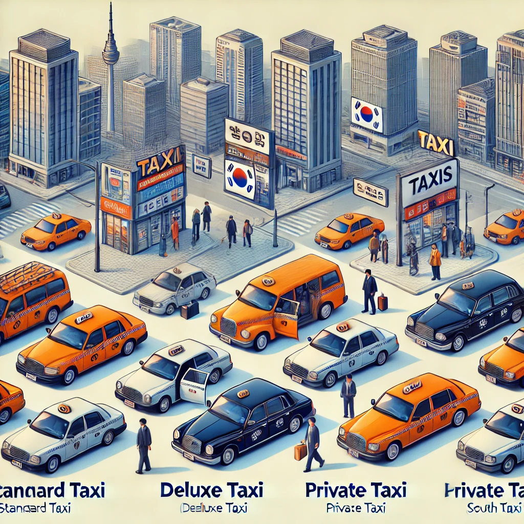 서울의 택시는 일반 택시와 모범 택시로 나뉩니다. 일반 택시는 흰색, 은색, 주황색 등 다양한 색상이 있으며, 모범 택시는 검은색입니다. Seoul taxis come in standard and deluxe forms. Standard taxis are white, silver, or orange, while deluxe taxis are black.