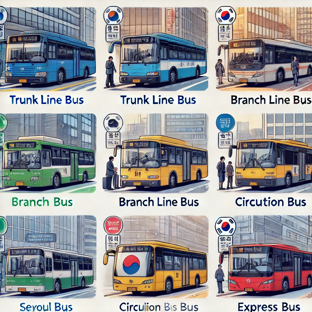 - 파란색 버스 (간선버스): 장거리 주요 간선 도로를 운행.