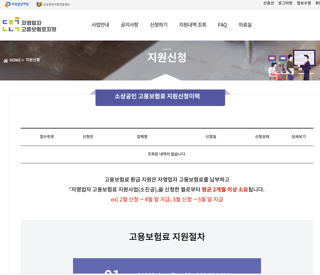 두 사이트에 접속해서 순차적으로 진행해야하는 점을 인지하시고 고용보험료 지원해서 실업급여(1년이상 고용보험가입), 각종 다양한 지원받을 수 있는 것들을 이용하시길 바랍니다.