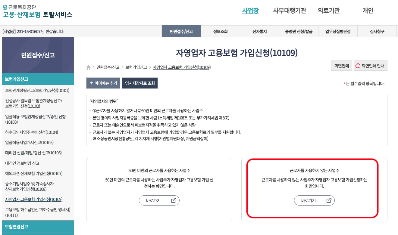 1. 고용보험 가입 (https://total.comwel.or.kr/)