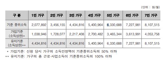 | 대상자 | 일하는 생계/의료 수급가구 중 근로 & 사업 소득이 중위소득 40~60% |